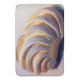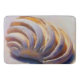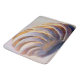 Simultáneamente moderno y antiguo en aspecto, la forma resumida en esta estera de baño es una fotografía original de una cáscara del mar. La cáscara es un molusco bivalvo, una almeja duro-descascada, llamada el venus imperial, que hace un promedio de tamaño de cerca de 1,5 pulgadas. Estas cáscaras son generalmente blancas pero, en esta foto, teñidas en azules en colores pastel, amarillo y rosas.