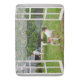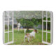 Los dos perritos de zorro blanco y marrón que miran a través de una ventana están explorando el jardín.