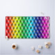 Ilusión óptica de bloques tridimensionales. Los colores del arcoíris fluyen de lado a lado (rojo, naranja, amarillo, verde, azul, púrpura y rosa).