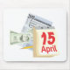 Este diseño presenta el 15 de abril como día fiscal. En este diseño se muestra un formulario de 1040, un billete de 100 dólares, un lápiz y un calendario con el 15 de abril, que se muestra en letras rojas grandes. Esta almohadilla del ratón se puede usar en cualquier escritorio. Un gran regalo para tu contable.