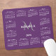 Alfombrilla De Ratón 2026 Calendar Chic Monogram Name on Purple