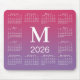 Alfombrilla De Ratón 2026 Calendar Monogram on Pink to Purple Gradient