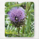 Una pequeña abeja ocupada en una flor de alcachofa.