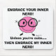 ¡Un diseño para todos los nerds de ahí (como yo!)! "¡ABRAZCA TU NERD INTERIOR! A menos que seas lindo...... ¡ENTONCES ABRAZAR MI NERD INTERIOR!" ¡Difunde el amor de los nerds con este diseño lindo, divertido y totalmente impresionante! Carácter 'Nerd interior' dibujado a mano y digitalmente coloreado. Copyright 2013 por Sunny