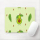 El aguacate kawaii sobre el patrón verde.