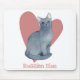 Alfombrilla De Ratón Acuarela azul de gato ruso Corazón gitano rosado