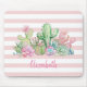 Alfombrilla De Ratón Adorable Cactus Acuarela, Rayas Rosadas Suculentas
