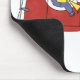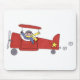 Un piloto del muchacho vuela a través del cielo en su aeroplano rojo.
