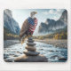 Alfombrilla De Ratón Águila Calva En Cairn Con Bandera Estadounidense