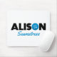 El nombre Alison con la letra O como botón. El texto "Seamstress" se puede eliminar o cambiar. También se pueden cambiar los colores.