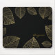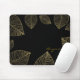Almohadilla de ratón de computadora elegante negra con hojas doradas. Agregar texto o dejar en blanco.