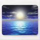 Un amanecer o una puesta de sol sobre un océano interminable. Diseño 3d CGI.