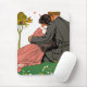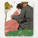 Ilustracion de moda vintage por mostrar a un par de amantes abrazándose en un campo antes de un hogar de aves.