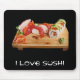 ¡Una visión para hacer el agua de la boca de cualquier amante del sushi! Una selección de sashimi, de nigiri y de makis descansando sobre un tablero de madera tradicional. La cola del atún, de color salmón y amarilla en sombras del rojo, del rosa y del naranja hace una presentación colorida junto con la pila de jengibre y de wasabi anaranjados.