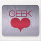 Simple pero fresco Geek Love (Heart) Mousepad con la palabra geek y un corazón damasco. ¡Que tus amigos de la oficina sepan de tu cariño por los geeks con este divertido mousepad! Personalizar este diseño eliminando o reemplazando la elegante imagen de fondo metalizado.