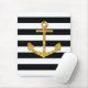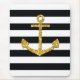 Ancla dorada sobre fondo rayado en blanco y negro.