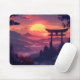 Verleihen Sie Ihrem Schreibtisch ein einzigartiges Flair mit diesem exquisiten Mousepad, das einen atemberaubenden Anime-Sonnenuntergang in lebendigen Farben zeigt. Die Szene fängt die Ruhe eines goldenen Himmels ein, durchzogen von warmen Rosa-, Orange- und Violetttönen, die sanft auf das glitzernde Wasser reflektieren. Silhouetten von Kirschblütenbäumen und sanften Hügeln runden das verträumte Bild ab.