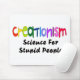 En una fuente apropiada del creyón con colores brillantes la palabra "creacionismo" se destaca sobre las palabras más pequeñas "ciencia para la gente estúpida" en texto negro en el camisetas ligero y blanco en el camisetas oscuro.