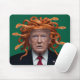 An anti Trump mousepad featuring Donald Trump with orange Medusa snakes for hair.