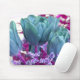 Tulipanes de bonito Aquamarine con follaje rosado y pequeños floretes morados sobre esta almohadilla de ratón.