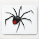 Una araña negra con un punto rojo en la parte de atrás del abdomen. Muy similar a una araña de la viuda negra.