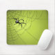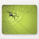 ¿Usted practica surf la tela? Esta tela es una que usted puede ser que quiera para tener cuidado para. Una araña espeluznante se sienta en su tela contra un fondo verde claro.