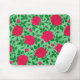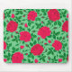 este diseño presenta un bosque de rosales rosados con hojas y brotes sobre fondo verde claro patrón de repetición sin fisuras.