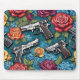 Añada un toque de elegancia a su espacio de trabajo con nuestra exclusiva almohadilla de ratón con pistolas de arma de fuego entrelazadas con rosas y olvidadizos sobre un vibrante fondo verde azulado. Perfecto para los que aprecian una mezcla de audacia y belleza, este diseño combina elementos llamativos con delicados florales para crear un accesorio destacado para tu escritorio.