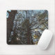 Esta foto capta la mirada del espectador a través de las ramas torcidas y entrelazadas de una mesa de árboles verdes de apariencia irregular.