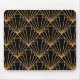 Esta almohadilla de ratón tiene un diseño Art Deco de diamantes y triángulos en oro sobre un campo de negro.