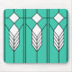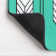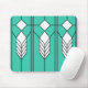 Esta almohadilla del ratón tiene un diseño Art Deco de vidrieras de diamantes y líneas en blanco, negro y turquesa.