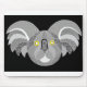 Arte aborigen genuino que representa una cabeza koala en gris sobre fondo negro.