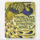 Ilustración antigua cartel Modernista Macmillan's Illustrated Standard Novels, Edición Pavo Real, 1896 por Albert Angus Turbayne. Este cartel Art Nouveau presenta un enorme pájaro, patrón de plumas de pavo real en tonos azules y dorados.