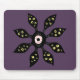 Mousepad espeluznante del monstruo del mal de ojo con un ilustracion del vector de una criatura extraña que se asemeja a una flor. En su centro hay un ojo grande con los vasos sanguíneos visibles sobre fondo adaptable púrpura oscuro. En los pétalos hay muchos ojos amarillos minúsculos que miran al ojo central. Estas ilustraciones inusuales apelarán a una persona que tenga gusto arte extraño, oscuro, gótico.