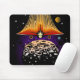 Arte vectorial original de un avión que sobrevuela la luna. Creado con lápices, plumas y coloreado en vector.