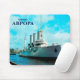 Una representación digital del crucero ruso Aurora amarrado en el río Neva en San Petersburgo. También aparece un texto en cirílico que dice "Kreiser AVRORA" (El Cruiser AURORA). El Aurora es un símbolo icónico de la Revolución Rusa de Octubre de 1917. En el momento de la anterior Revolución de Febrero, la Aurora fue atracada en el río Neva en Petrograd (San Petersburgo) para reparaciones. Parte de la tripulación del barco había participado en la revolución que tuvo como resultado la abdicación del Zar Nicolás II. Se creó un comité revolucionario en el barco y la mayor parte de la tripulación se unió a los bolcheviques de Lenin, que se preparaban para una revolución comunista. A las 21.45 horas del 25 de octubre de 1917, la Aurora lanzó una ronda en blanco desde su arma antidisturbios para señalar el inicio del ataque contra el Palacio de Invierno. La Aurora ha sido durante décadas un barco museo y una atracción turística para millones de visitantes en su actual ubicación en Leningrado (ahora San Petersburgo).