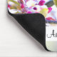 Una almohadilla de ratón con una fotografía asombrosa del pequeño pájaro más lindo encaramado en una rama cubierta de flores rosas y hojas verdes. El pájaro tiene la cabeza azul y el cuerpo amarillo con una cara muy dulce. Adorable.