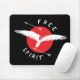 Diseño gráfico y de texto de espíritu libre. Logo de un pájaro de presa volando evitando flechas de cazadores. Almohadilla del ratón para los amantes de las aves y librepensadores.