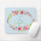 Alfombrilla De Ratón Azul Boho Pastel Nombre Floral Script Monograma
