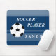 Diseño de futbolistas con una pelota de fútbol. Para cambiar el color de fondo de estos mousepads de fútbol personalizados, haga clic en el botón "Personalizar", luego haga clic en "Editar">>"Fondo" y seleccione un color.