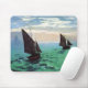 Barcos de pesca de Monet en el cojín de ratón de mar. Pintura al óleo en lona a partir de 1868. Monet pintó los barcos de pesca con frecuencia. Esta pintura del puerto deportivo es una de sus primeras obras y muestra su progreso hacia impresionismo. Tres barcos de pesca navegan sobre ondas verdes de mar con las nubes de la madrugada que flotan por encima. Un regalo bonito para las fans de Claude Monet, de Oceanscapes, y de las pinturas del barco de pesca.