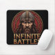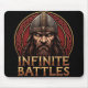 Un diseño audaz y dinámico con el texto "Batallas infinitas" en una paleta de colores vikingos tradicionales de rojo y oro. Las palabras están dispuestas en un poderoso estilo angular, que recuerda a las pistas antiguas. El fondo es una superficie texturada y templada, añadiendo un sentido de autenticidad e importancia histórica.