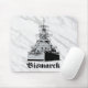 Mousepad with drawing of the famous German battleship Bismarck of world war II with the name of the ship written with fraktur letters.