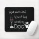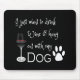 Añade un toque divertido a tu escritorio del ordenador con un Vino de Bebida y cuelga con mi almohadilla del ratón de perro. El diseño de las toallas de ratón está adornado con el dicho de que sólo quiero beber vino y salir con mi perro, con una huella de pata y un vaso de vino tinto contra un fondo negro, pero que puede cambiarse a tu elección de color. Diseño de texto disponible en camisetas para mujeres y artículos de regalo adicionales.