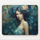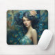 Alfombrilla De Ratón Belleza de pluma de pavo real: mujer en Verde azul