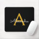 Alfombrilla De Ratón Black Gold Girly Script Monograma Nombre moderno