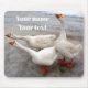 Foto de Zolotareva. Blanco ganso en la nieve blanca. Los geeses son graciosos. Puedes agregar nombre o texto personalizado. Personaliza esta plantilla