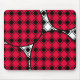Esta almohadilla de ratón tiene un diseño moderno de mediados de siglo de diamantes negros sólidos dentro de contornos de diamante negro con manchas rosas debajo de ellos, todo en un campo de blanco.