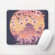 Arte vectorial original de un árbol de flores de cerezo en la naturaleza durante el atardecer.