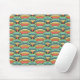 Esta almohadilla del ratón tiene un diseño boho de arcos solapados en colores boho de azul, verde, amarillo y rojo.